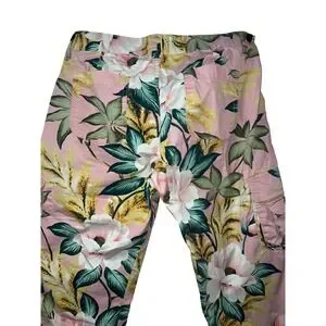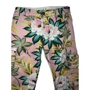 Lucky Brand Tropical Floral Cargo Capri Pants Pink Green White Bloom Print 10/30