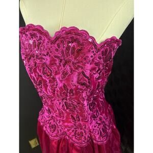 VTG 90s Hot Pink Sequined Embroidered Satin Bubble Hem Mini Party Dress 13/14