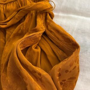 Elegant dress with high button neck, partially exposed open back, peek a boo key hole in front and a flowy physique. Dress has cute pockets as well as ballooned arms. Elastic waistline for extra stretch. Dress is in excellent condition. Hardly worn! Size small. Sits just above the knee on a 5'4 woman.