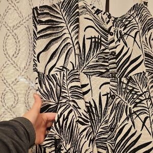 Stylish palm print dress by Hutch. Features a black and white design. Perfect for casual outings.