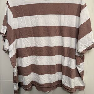 Stylish striped tee. The stripes are more of a mauve color. Comfortable fit. Perfect for casual outings.
