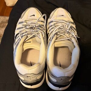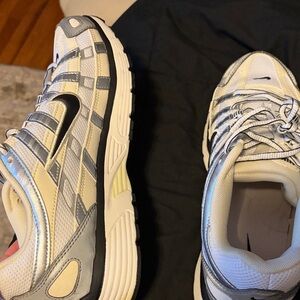 Elevate your athletic look with these Nike shoes. Sleek white and gray design. Perfect for comfort and style.
