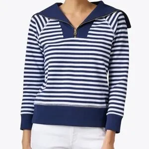 Elevate your style with this chic nautical striped top. Featuring a classic navy and white design, it's perfect for any casual outing. Enjoy the comfort and elegance of this must-have piece.