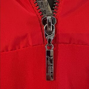 Joseph Ribkoff Zip High Neck 3/4 Sleeve Shift Dress 244045, NWT. Size 10. This elegant shift dress features a high neckline with zipper closure, 3/4 sleeves, and two pockets for added functionality. Perfect for any occasion, add this dress to your wardrobe for effortless style and versatility! Beautiful shade of a blue red.
