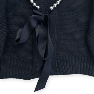 Zara Pearl Bow Chunky Knit Cardigan Size S Wool Blend Whimsi Feminine Coquette