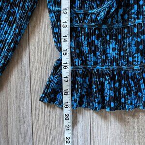 Zara Cropped Peasant Blouse in Blue Black Floral Print Womens Medium Boho Y2K