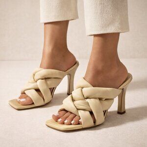 Zara Quilted Braided Leather Heeled Mules Vanilla Yellow US 6.5 EU 37 UK 4.5