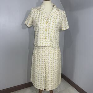 Vintage 60s Mod Skirt Suit Jackie O Preppy Daisy Floral Set Mad Men Cottagecore