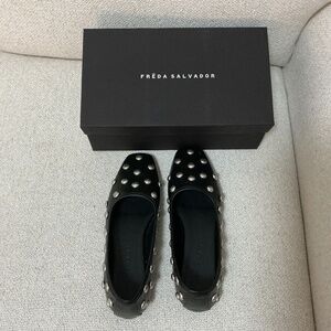 Brand new, with box, never-been-worn Freda Salvador ballet flats. Final sale when purchased in December. Great condition and quality. Great for dinner dates, work, weekend activities, cocktail parties, etc. Bought 8.5 but can fit a size 9.
