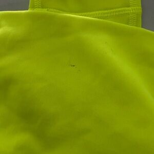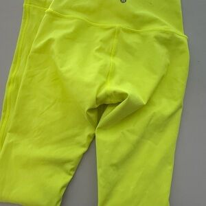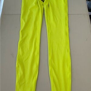 Vibrant neon yellow leggings. High-waisted design. Perfect for workouts.