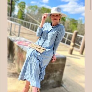 Embrace elegance with this chic light blue maxi dress. Perfect for any occasion, it features long sleeves for a sophisticated look. Tabitha Zadie b’s