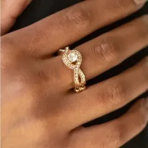 This stunning women's ring features a beautiful gold band adorned with sparkling silver accents. Perfect for adding a touch of elegance to any outfit.