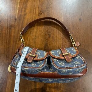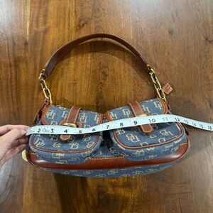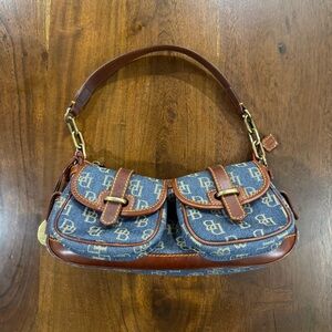 Dooney Bourke Y2k Retro Logo Denim Blue Saddle Banana Shoulder Bag Vintage