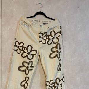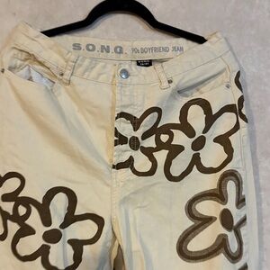 Step out in style with SONQ's floral boyfriend jeans. The cream and brown colors create a trendy look perfect for casual outings.