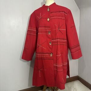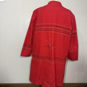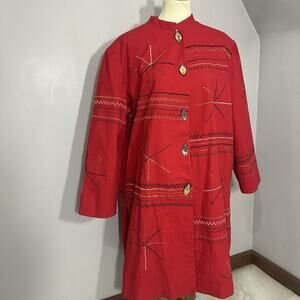 Indigo Moon Embroidered Canvas Jacket Size 1X Cotton Boho Button Up Artsy Tribal