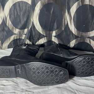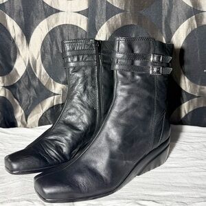 Nine West Black Leather Ankle Boots | Size 7M | Wedge Heel Buckle Detail