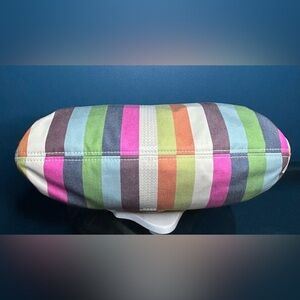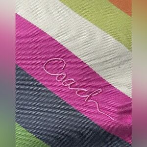 This colorful and cheery Coach Poppy Glam Tote Legacy Stripe Tote, style 19021 (retail), was made in 2011 and is in fantastic, like new condition.