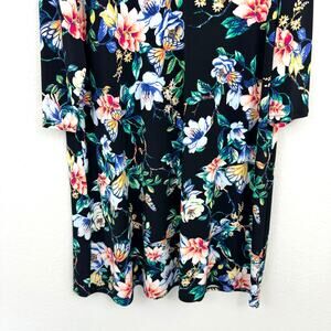 Chico's Women's Floral Butterfly Jersey Midi Dress Black Size 16 / 18