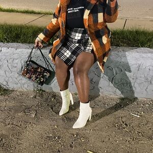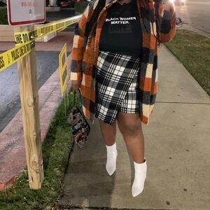 WOMENS PLUS BLACK AND WHITE PLAID FLEECE MINI SKIRT ONLY SIZE 4X