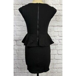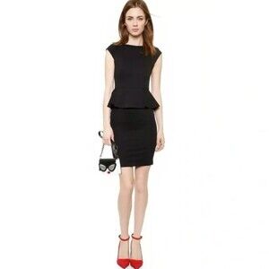 Alice + Olivia Employed Fitted Scoop Black Peplum Cap Sleeve Sheath Dress