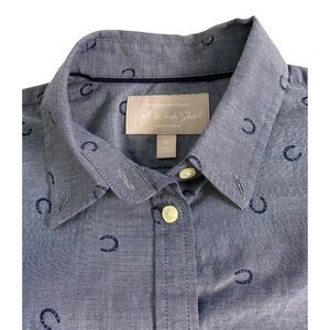 Banana Republic Shirt Women's M Blue Soft Wash Button-Up Horseshoe Print Country