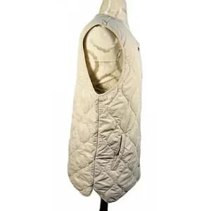 Woman’s sleeveless quilted vest jacket in beige by 32 Degrees.