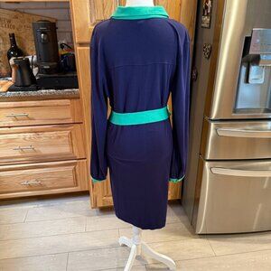Lilly Pulitzer Navy & Green Belted Long-Sleeve Dress XL EUC