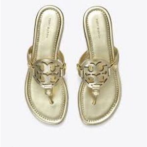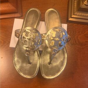 Tory Burch Gold Metallic Leather Miller Women's Sandals Size 9 MSRP $225