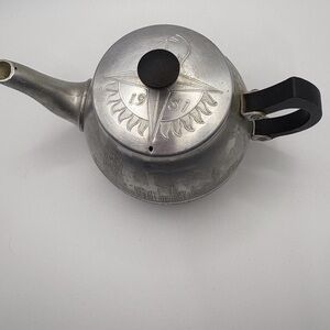 Silver Teapot with Black Handle 1951 Antique Aluminum