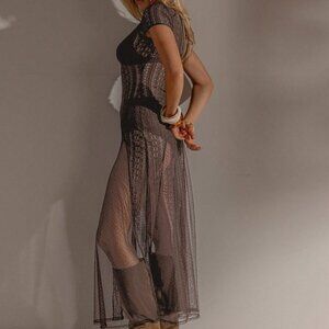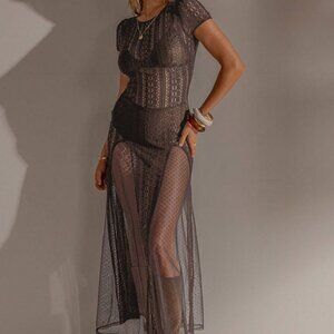Coffee Brown Casual Women's Sexy Sheer Lace Maxi Dress