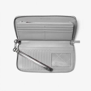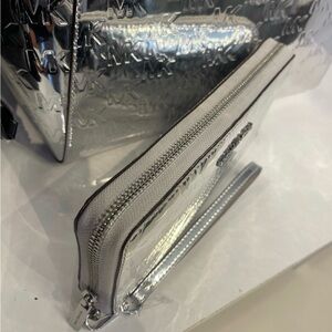 Michael Kors Silver Jet Set Metallic Logo Embossed Wristlet
