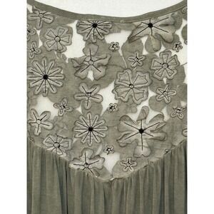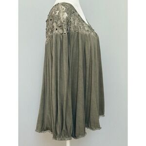 POL Women's Small Olive Green Boho Floral Lace Long Sleeve Blouse Top Oversized