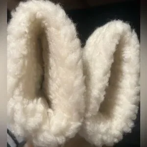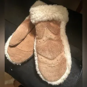 Warm and stylish leather/suede tan mittens with ivory shearling lining. Cozy & perfect for cold weather outdoor activities Pre-owned no rips tears. Normal gentle wear