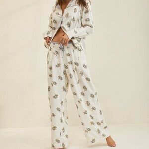 Aerie NWT Cindy Lou Who Street Flannel Trouser PJs, Viral Best Seller, soft, cozy, flannel, wide leg, drawstring waist, oversized fit, perfect for lounging.
