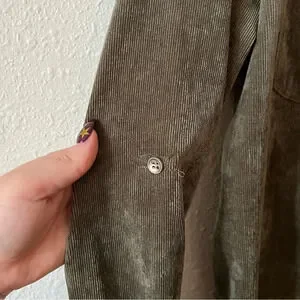 Skies are Blue Corduroy Button Up Shirt Jacket Olive Green Size Medium