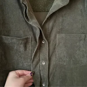Skies are Blue Corduroy Button Up Shirt Jacket Olive Green