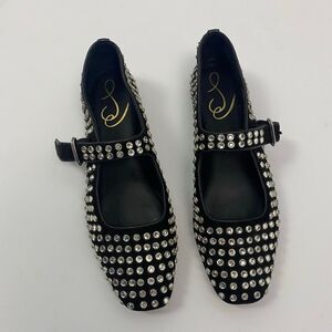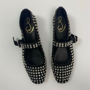 Add eye-catching appeal to tailored looks with the Michaela Mary Jane flat from Sam Edelman. Flashy circular jewels embellish the fabric upper while the squared off toe adds a modern finish.