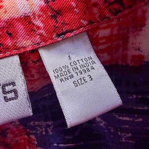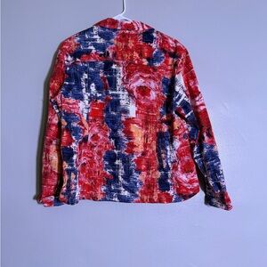 Vintage Chico's 100% Cotton Jacket with Abstract Floral Print in Red And BlueSz3