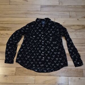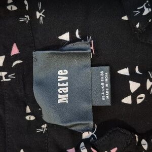 Anthropologie Maeve Women's Size 4 Black and Cat Pattern Shirt