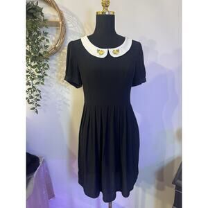 This Current Mood black dress delivers soft-goth innocence with just enough tension to keep things interesting. Classic short sleeves, gently gathered skirt, and a crisp white Peter Pan collar embroidered with tiny yellow florals—because nothing says power like looking harmless while absolutely not being that.