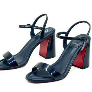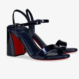 Christian Louboutin MISS JANE SANDAL 85 Patent Leather Heels Shoes Zaffiro