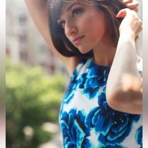 Anthropologie | Pooridge Rosebloom Burnout Fit and Flare Dress Blue, Size 4