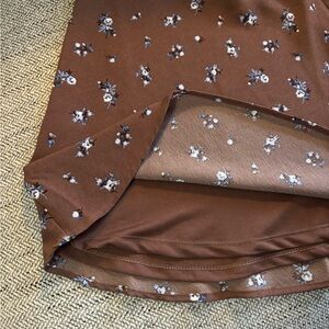 Brown & Blue Floral Mini Skirt Size 2, lined and side zipper like new!!!