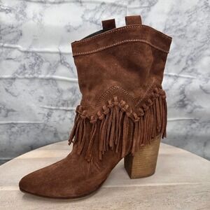 ALDO Kycia Fringe Suede Western Ankle Boots Women's Size 9 Brown Block Heel