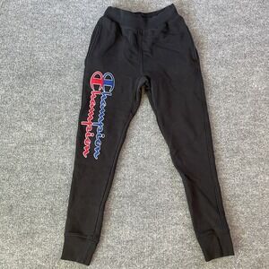 Champion Sweatpants Mens Small Reverse Weave Joggers Black Spellout Logo.