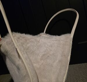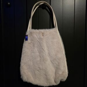 NWT Victoria's Secret Faux Fur Tote Cream Weekender Shoulder Bag Fuzzy Soft
