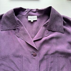 Vintage Pura Seta Italian Purple Silk Short Sleeve Button Down Medium