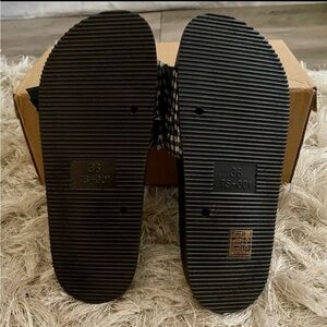 These black slides are brand new and will come in their box! They feature a foam sole for maximum comfort with a super cute gingham print ruffled band across the top which will add the perfect amount of sass to any outfit. These shoes are great for everything like hanging out by the pool, at the lake, running errands, lounging at home etc.