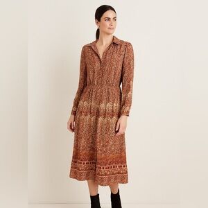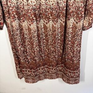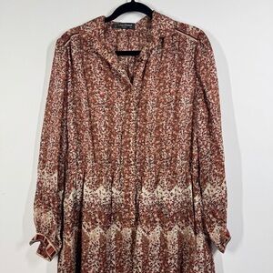 Louis Féraud Paris Vintage Floral Midi Dress Brown Red Size 38 Boho Fall Chic