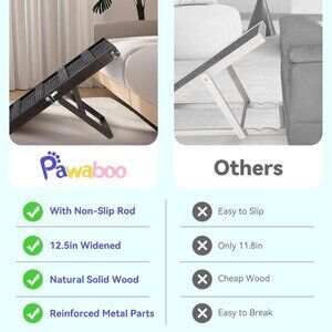 ✅【Foldable & Portable】 Folding design, the pet ramp size after folding is 16.5'' x 12.6'' x 5.5'', which is easy to store. When not in use, it can be placed in car trunk, under sofa to save space. Light weight and side handles are also convenient to carry when traveling.